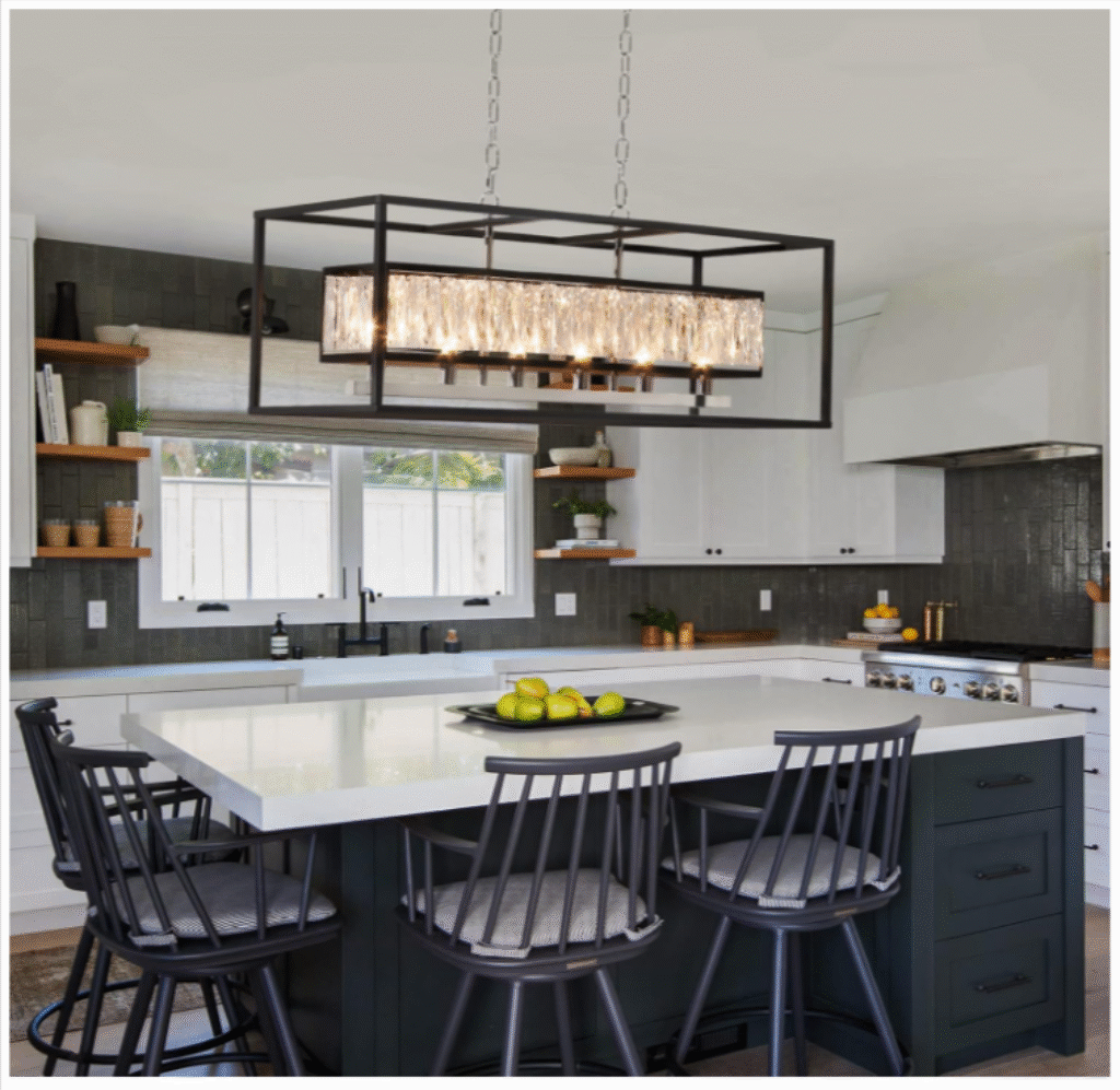 This luxury black-gold rectangular chandelier is perfect for dining rooms, kitchen islands, foyers, and modern homes that demand a statement piece.