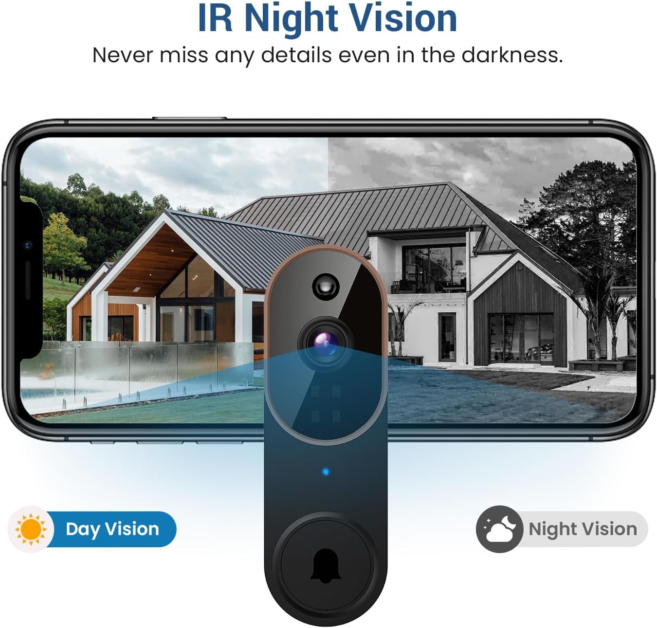 Complimentary Doorbell Chime: Install the included chime in various locations like the kitchen, living room, or on the porch. Link one doorbell with several chimes indoors for added convenience. Bidirectional Audio Feature: Engage in real-time communication with visitors from anywhere, allowing instant interaction.