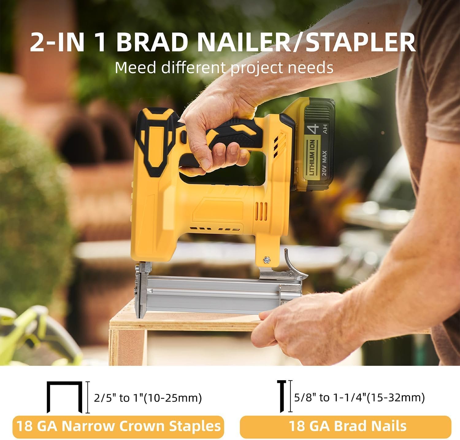 🔥 Hot Deals Today 🔥 18 Gauge Brad Nailer/Narrow Crown Stapler Compatible with Dewalt 20V MAX Battery(NO Battery) 2 in 1 Cordless Nail Gun with 1000 Nails and 1000 Staples for Home Improvement, DIY and Woodworking