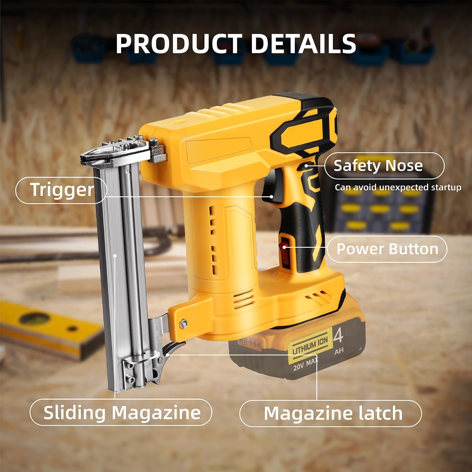 【Battery Powered 18 GA brad nailer】This narrow crown stapler is compatible with Dewalt 20V Max Batteries such as DCB200, DCB201, DCB203, DCB204, DCB205, DCB206, etc. Note: Cordless Brad Nailer only, battery is not included