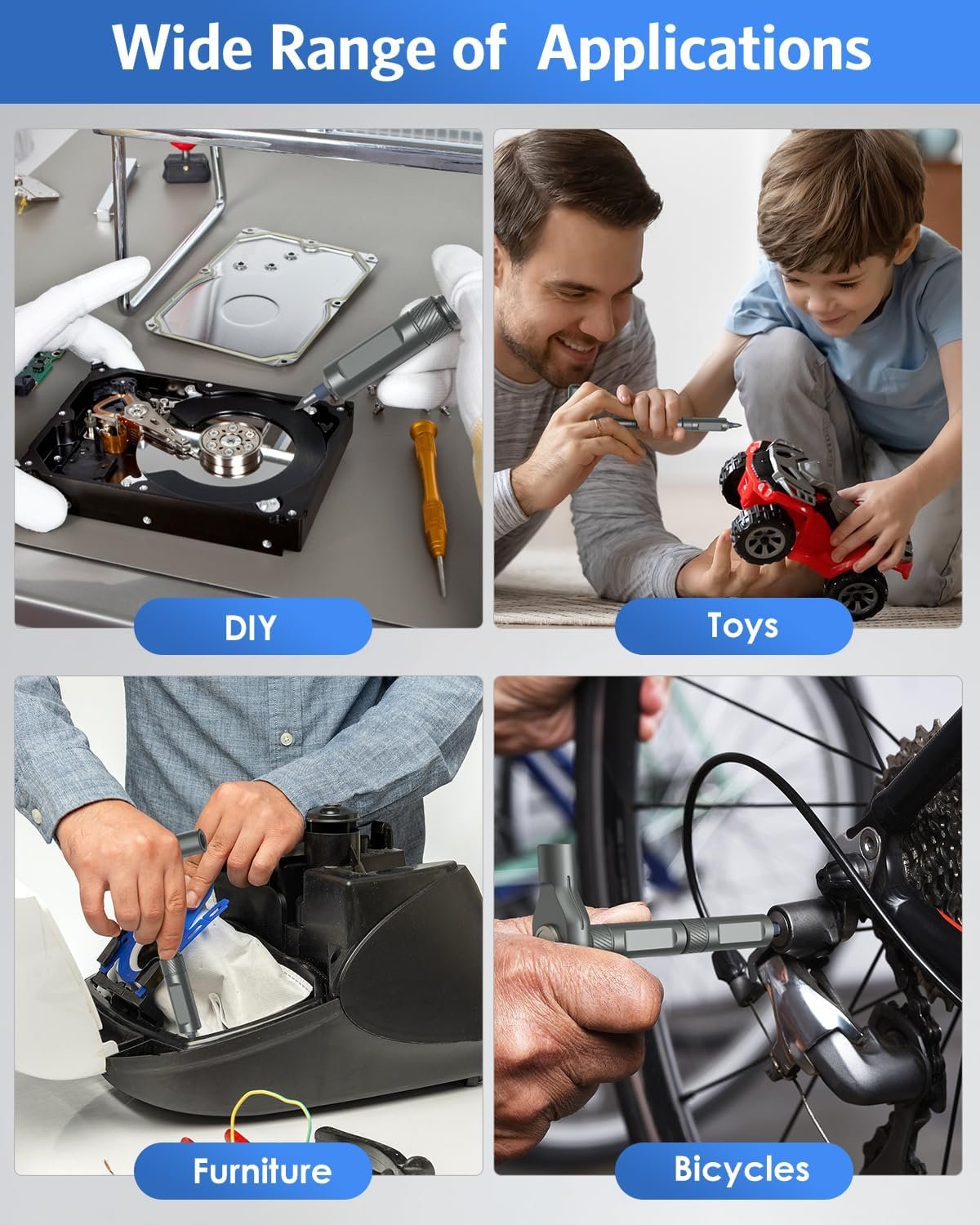 【Compact & Thoughtfully Designed Storage Case】Fits neatly in a sleek, portable case (6.5 x 3.72 x 1.55 inches). Color-coded bits for quick identification. A smart, stylish gift for DIY lovers, handymen, engineers, and dads — perfect for birthdays, Father’s Day, Christmas, or any occasion. This versatile ratchet screwdriver set makes a thoughtful Christmas gifts