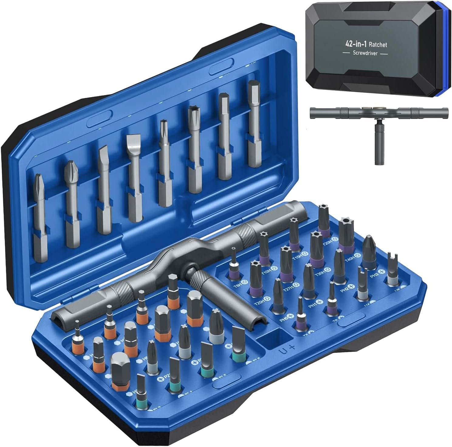 🔥 Hot Deals Today 🔥 42 in 1 Magnetic Screwdriver Set, AMIR Ratchet Screwdriver Set for Christmas Gifts, DIY Repair Tool Kit with Magnetic Multi Bit, Rotatable T Handle for Furniture, Computer