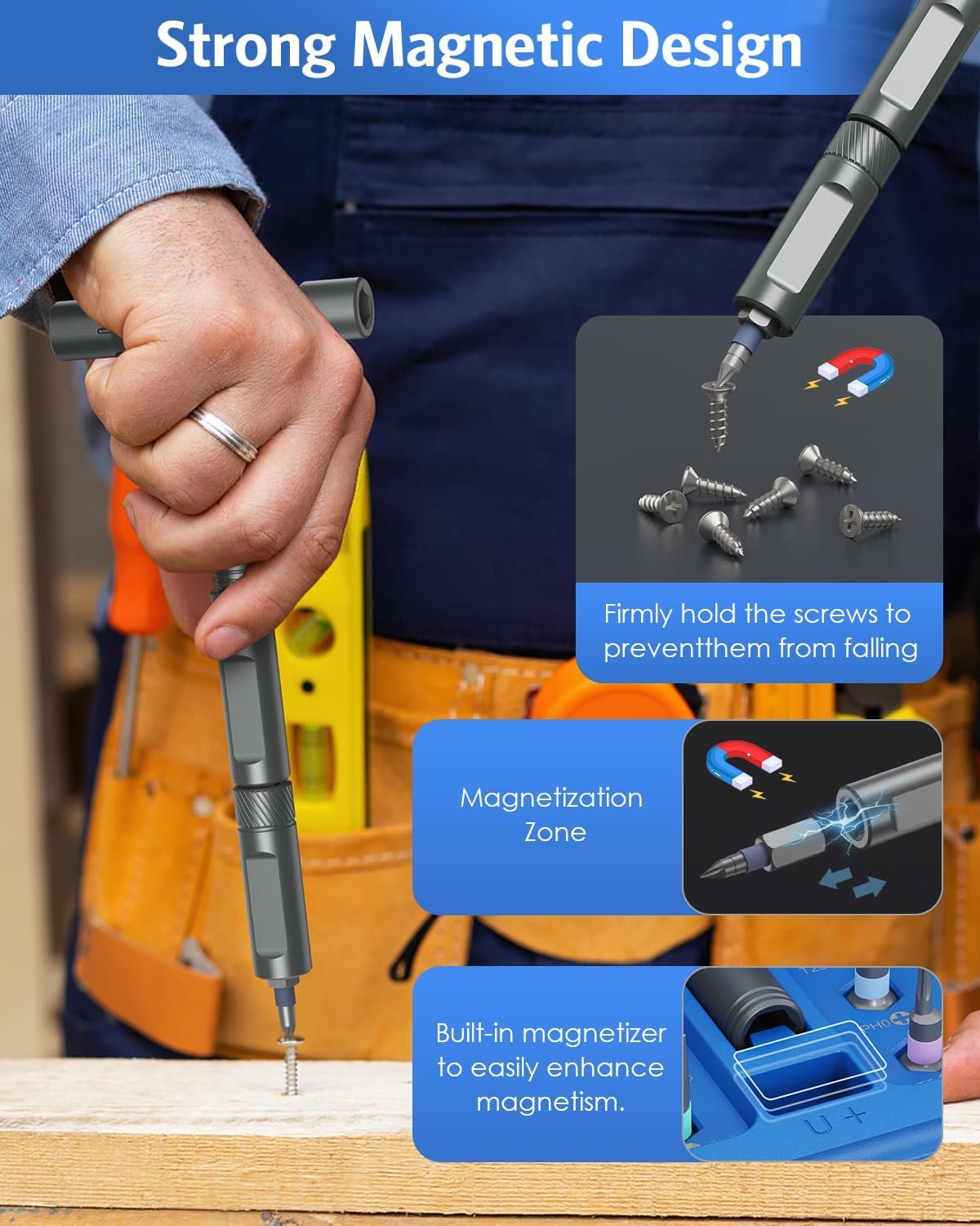 【Built-In Magnet System for Smarter Use】Combines screwdriver + mini wrench in one! Powerful magnets securely hold bits in place, and the built-in magnetization chamber lets you re-magnetize bits anytime — no more dropped screws or missing tools