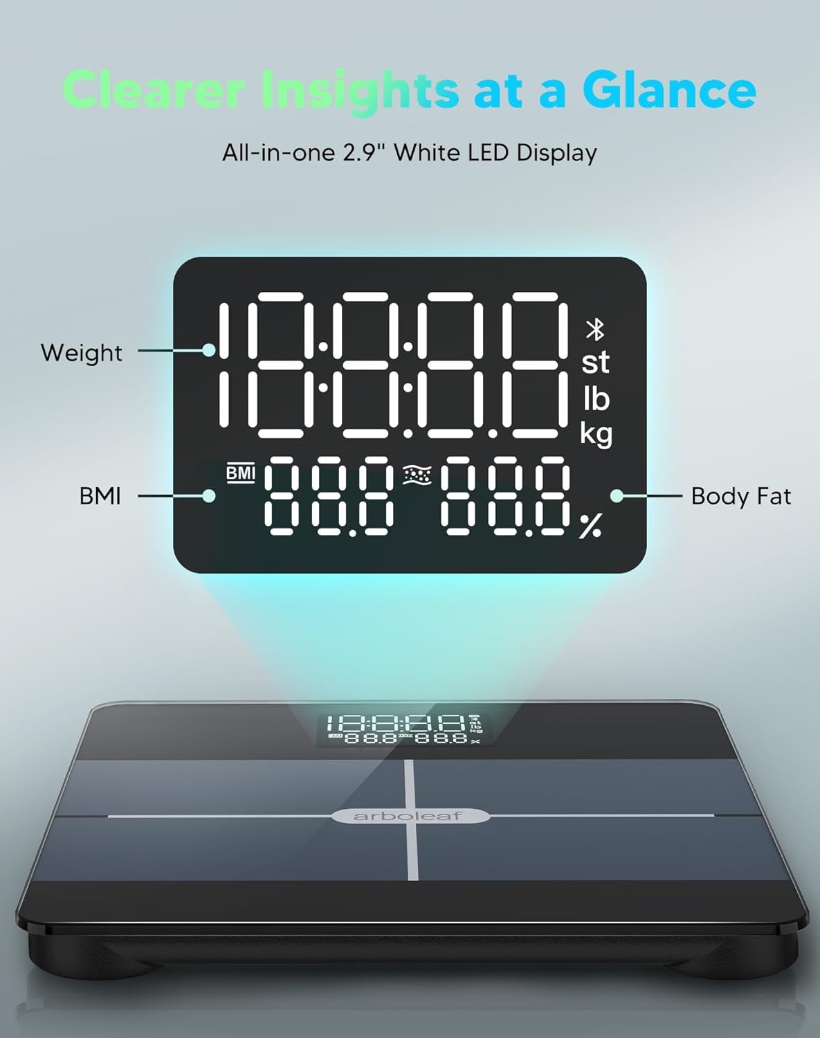 Tags: #arboleaf #Smart #Scale #Body #Weight #Body #Fat #Scale #BMI #Muscle #Mass #3in1 #LED #Display #Bluetooth #Accurate #Weight #Machine #Tracks #Body #Metrics #App #Sturdy #Tempered #Glass #400lb