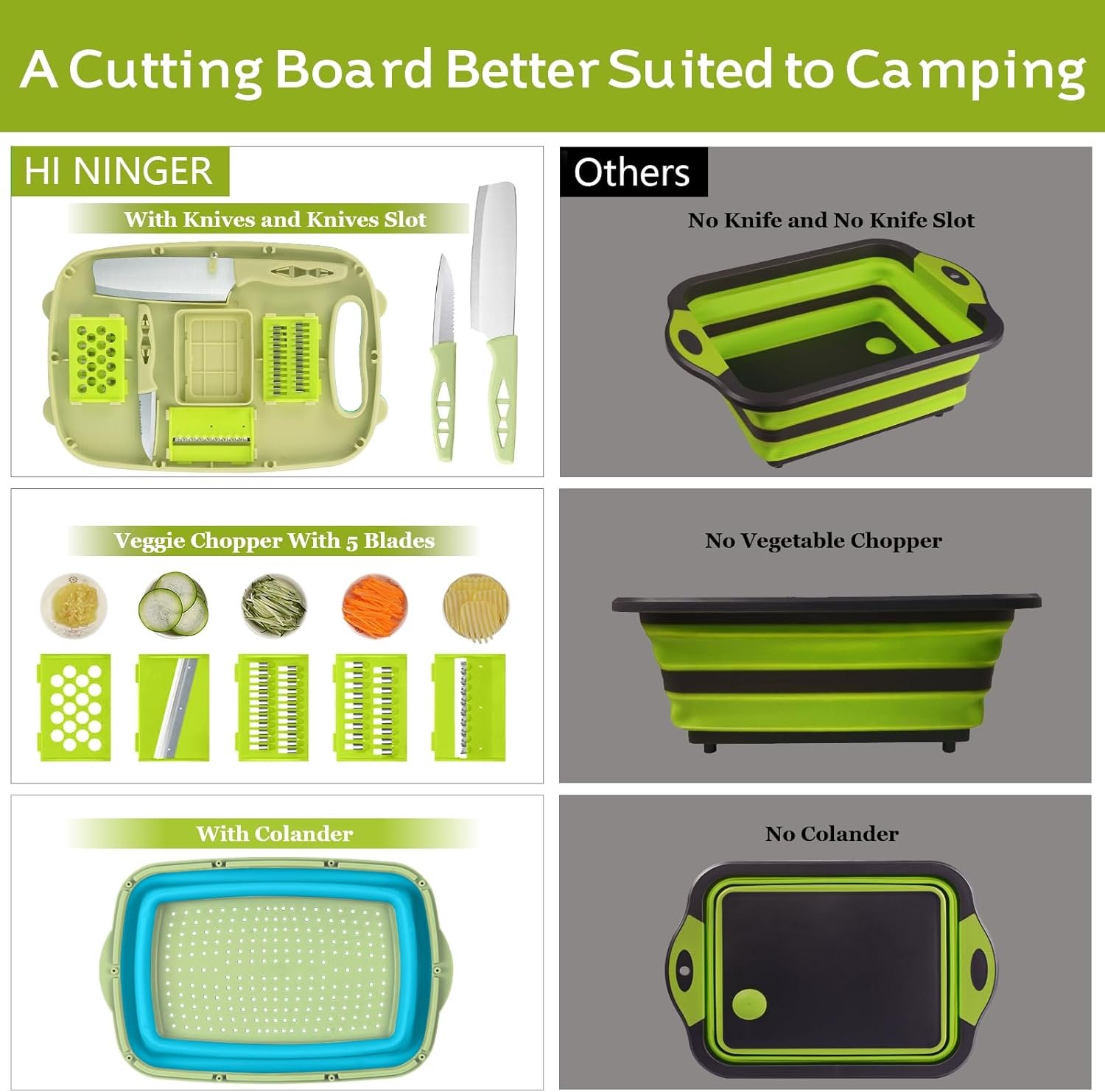 🔥 Hot Deals Today 🔥 Camping Cutting Board, HI NINGER Collapsible Chopping Board with Colander, 9-In-1 Multi Chopping Board Kitchen Vegetable Washing Basket for Camping,Camping Gifts Camping Accessories for RV Campers