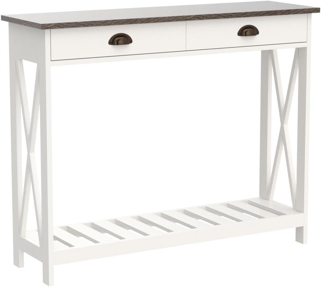 🔥 Hot Deals Today 🔥 ChooChoo Farmhouse Console Table with Drawer for Entryway, Narrow Long Entry Table with Shelf for Living Room, Rustic Vintage Hallway Sofa Table with Stable X Supports, 40 White