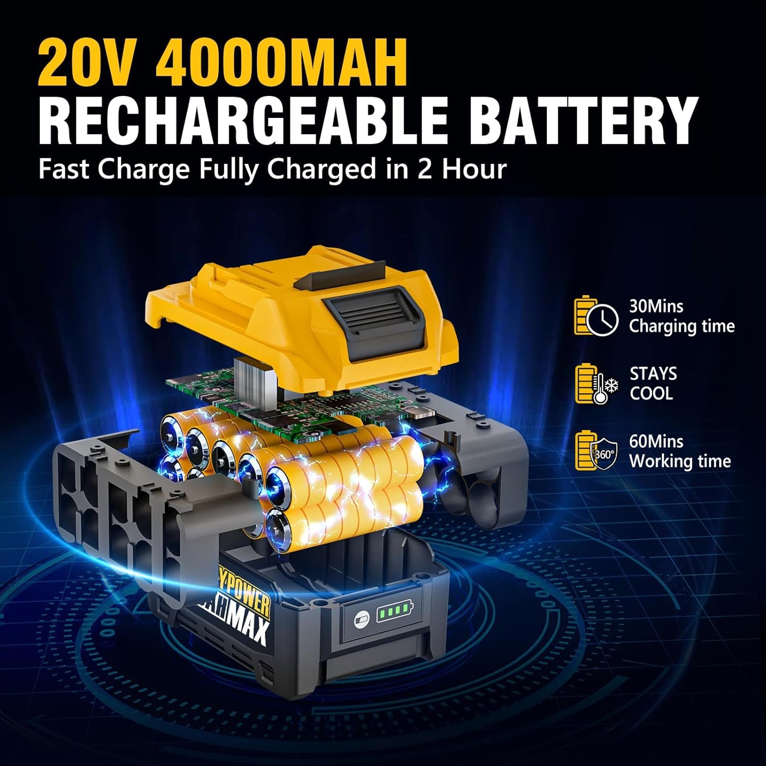 【Double the Runtime, Fast Recharge】 Includes two 20V 4.0Ah batteries and a fast charger (1–2 hours). The LED power indicator ensures perfect battery management.