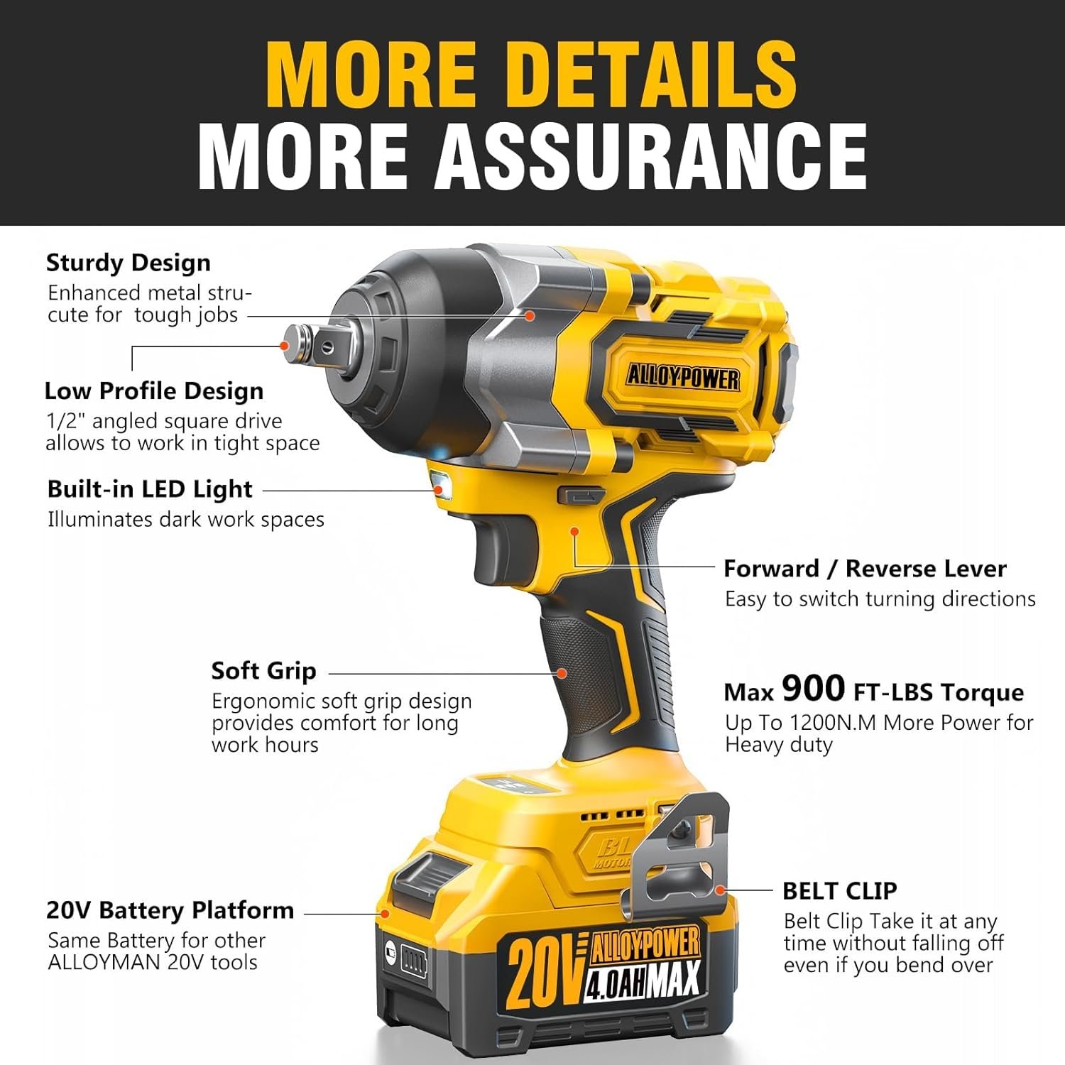 Tags: #Cordless #Impact #Wrench #900Ftlbs #1200N.m #Brushless #Impact #Gun #20V #High #Torque #Power #Impact #Driver #2×4.0Ah #BatteriesBrushless #Motor #RPM #Variable #Speeds #Family #CarPickup #TruckMower