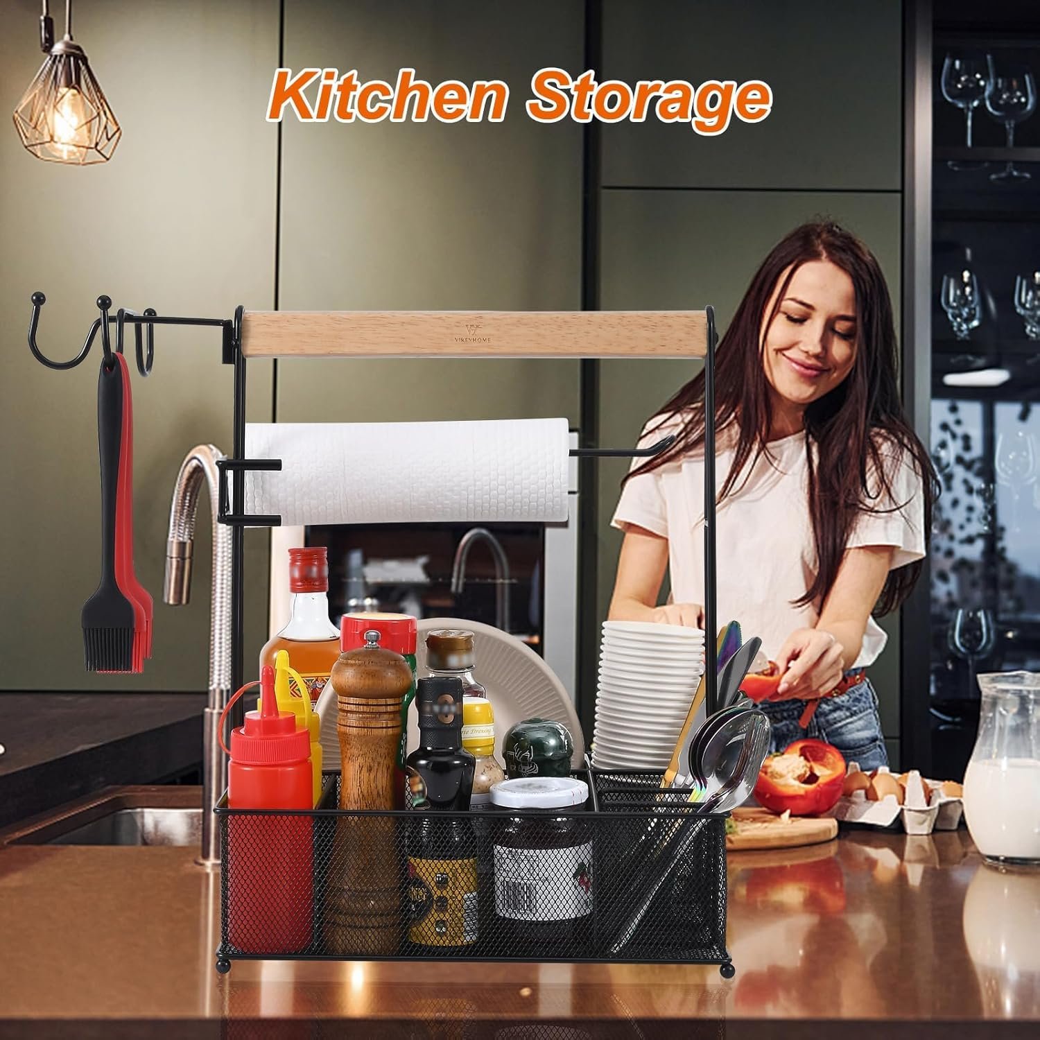 CONVENIENT AND SPACIOUS – The extra large capacity grill caddy is a must-have for anyone who enjoys outdoor activities such as camping, grilling, picnics, and more. With 7 compartments, a paper towel roll holder, and 3 hanging hooks, it can easily hold all of your barbecue accessories, picnic supplies, camping gear, tailgating accessories, and cleaning products, making your travel much easier.e to your outdoor table eating area!