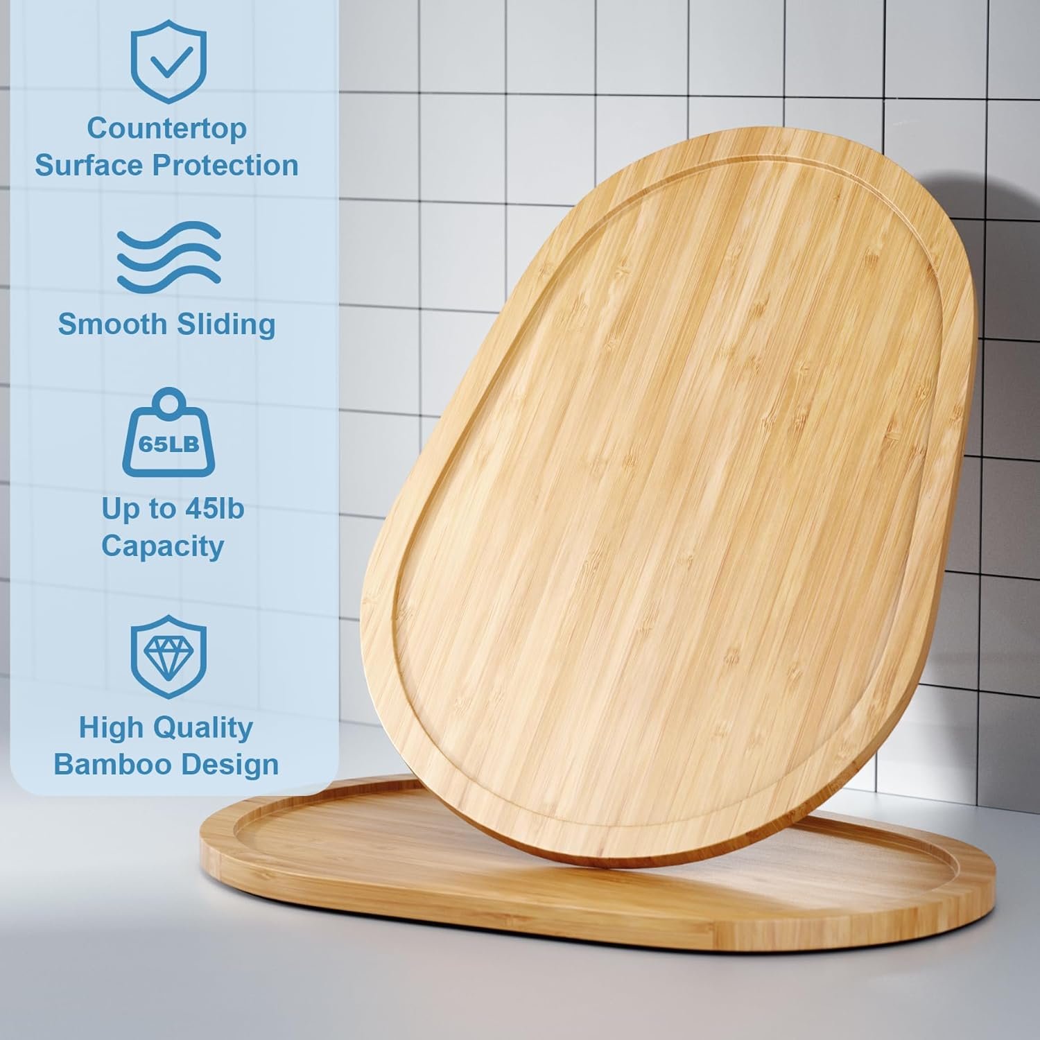 HIGH QUALITY FOOD-GRADE MATERIAL: The appliance sliding mat is made of high quality natural bamboo, sturdy and durable, not easy to crack, smooth surface, not only protect the machine, but also prevent the countertop from being scratched by the blender