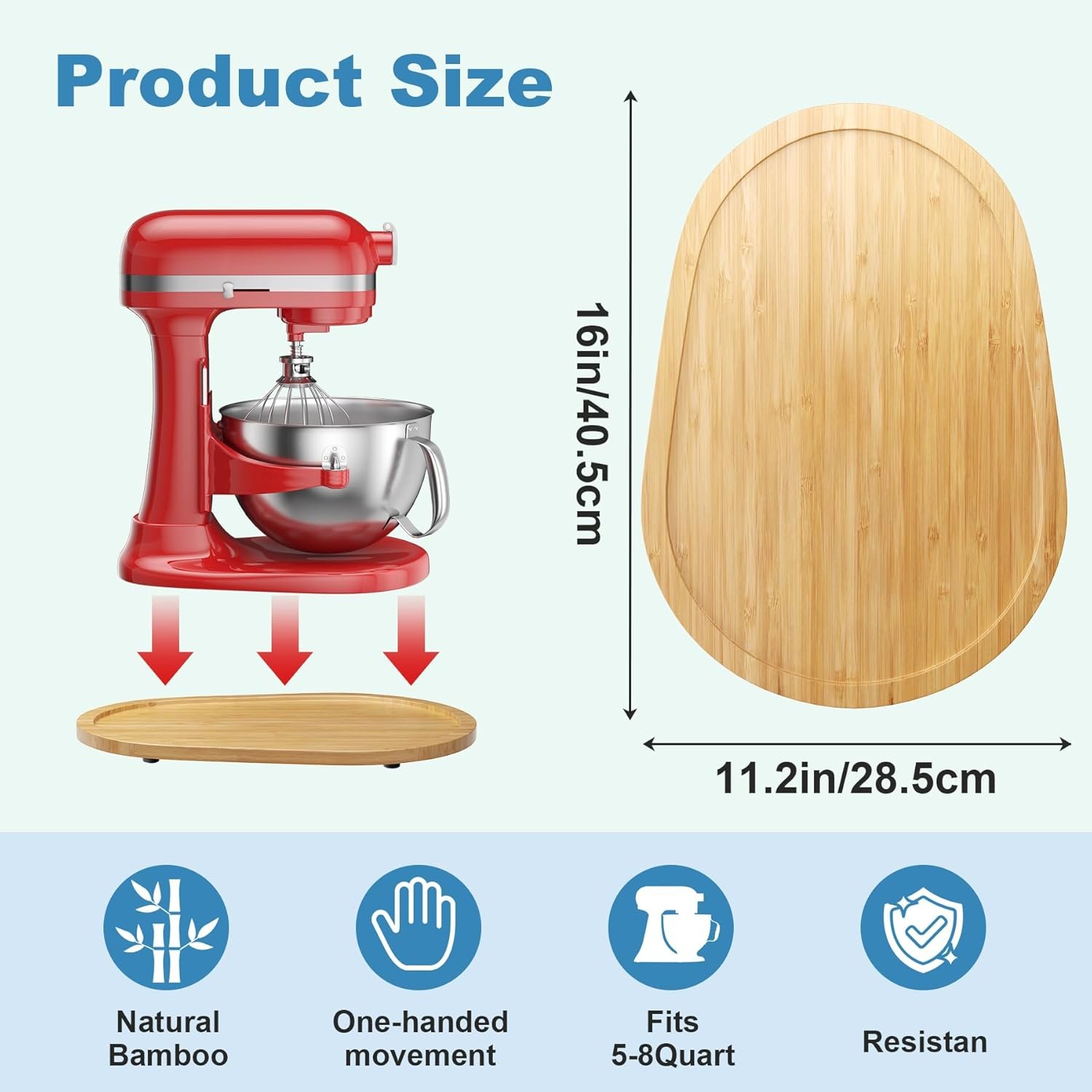 This Bamboo Mixer Slider can help you move your heavy Kitchen aid Mixer 5-8 Qt easily.οΌNOTE: It is not for KitchenAid Pro 450 Series / PRO 500 SeriesοΌ