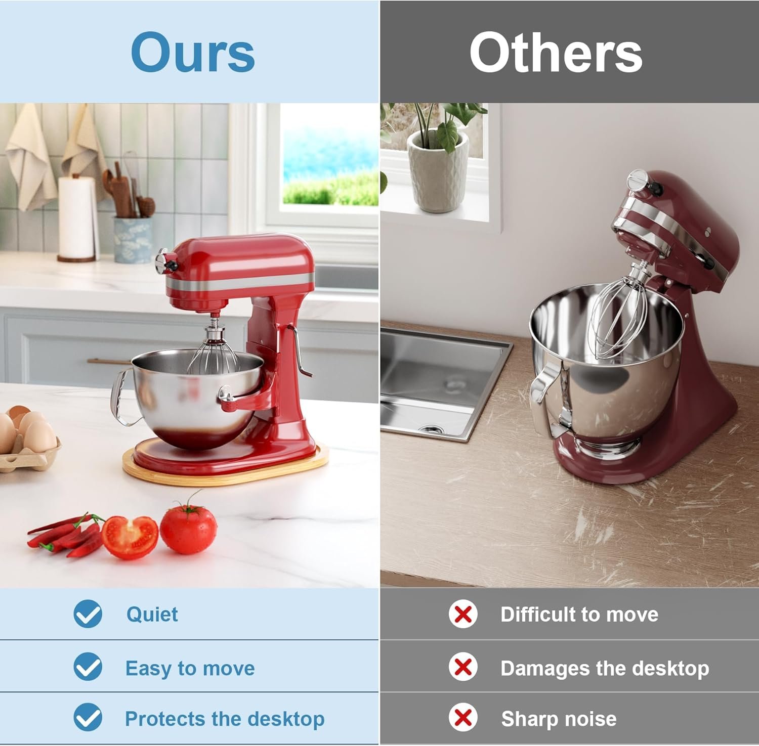 Double-sided protection, not only to protect your Kitchen aid Stand Mixer, but also to protect your countertop.