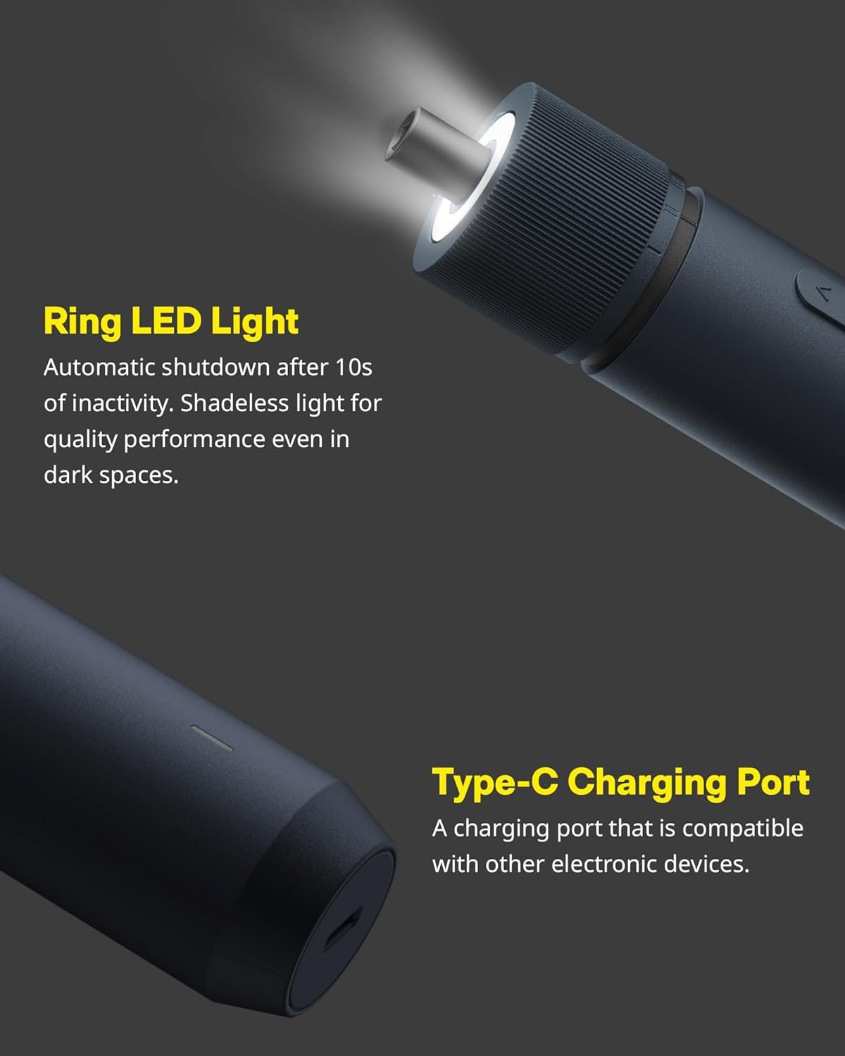 Shadowless Circular LED Light: Features an automatic circular LED light that eliminates shadows and provides clear visibility in dark or narrow spaces. Designed with a focus on quality, style, and ease of use for confident performance