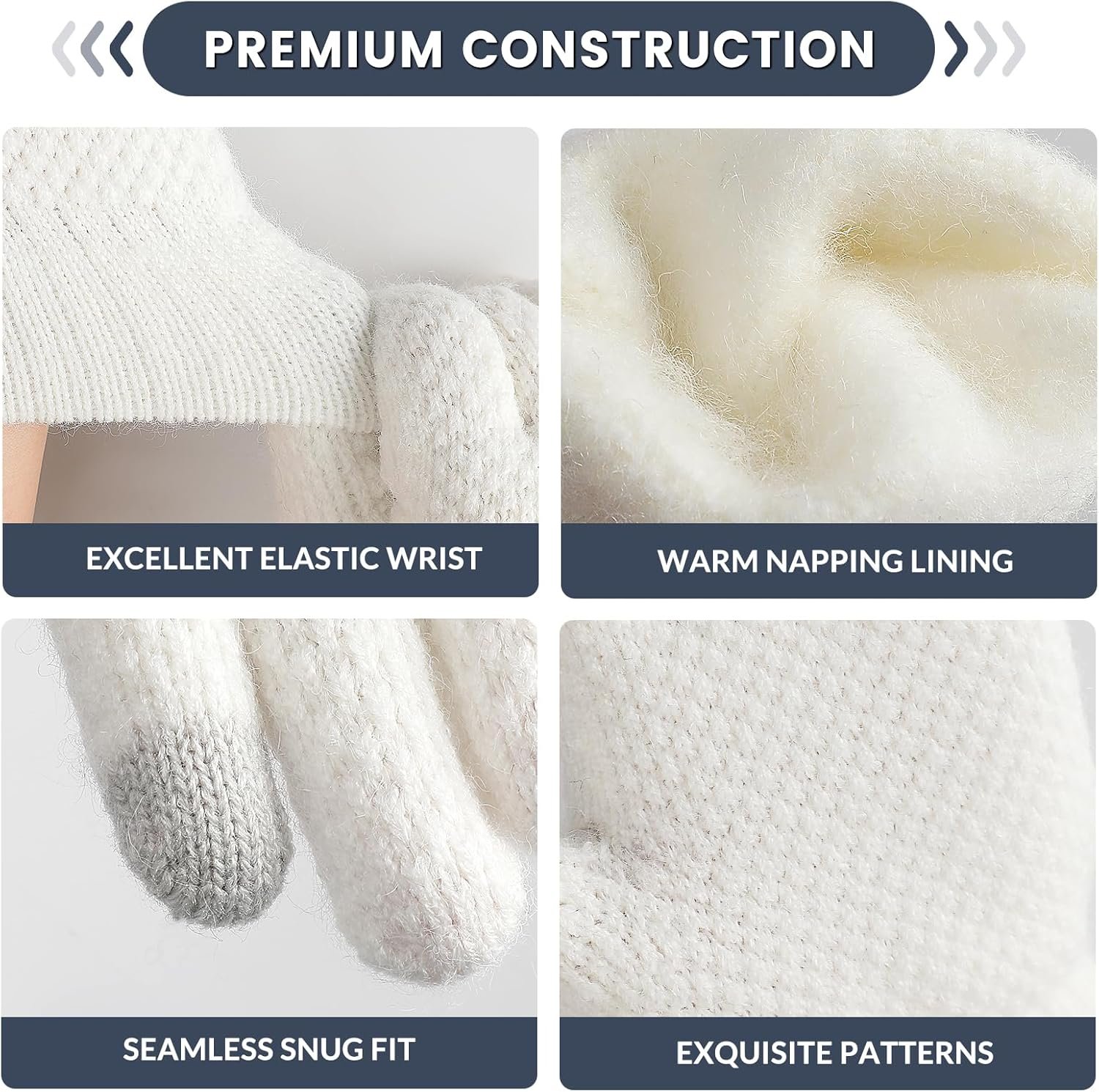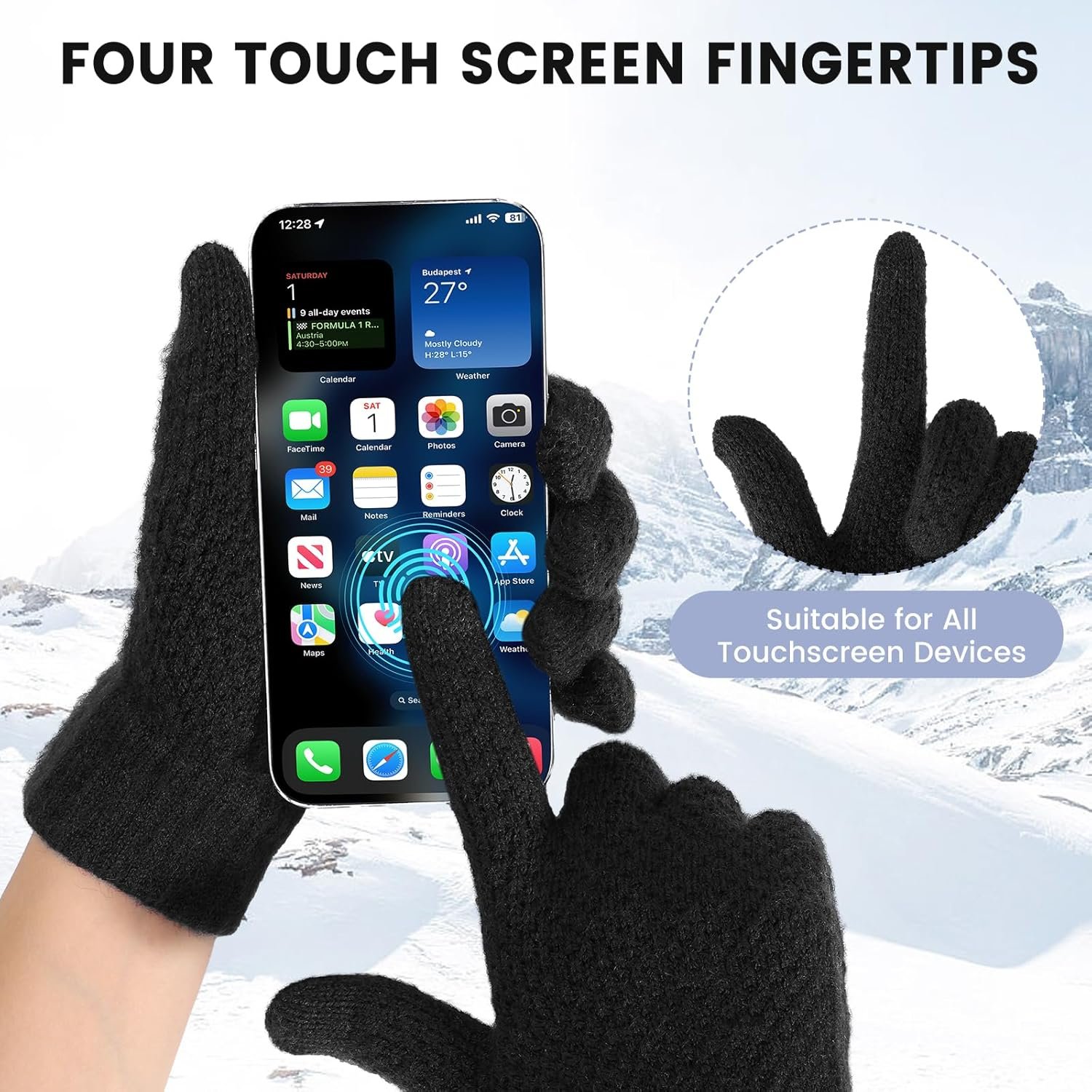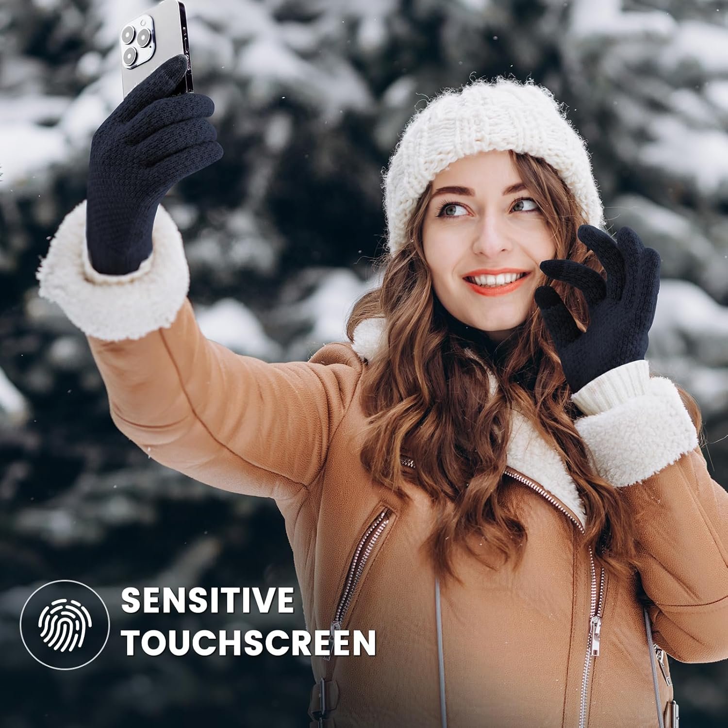 The women winter gloves feature conductive materials on the tips of the thumbs and index fingers, enabling you to use all touchscreen devices like smartphones and tablets, allowing you to play with your touchscreen devices, without worrying about freezing hands.