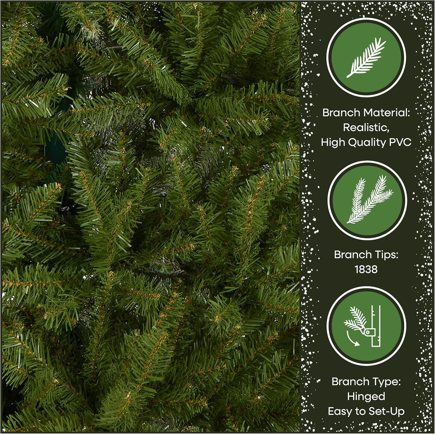 This tree features pre-attached, hinged branches that drop down for a simple set-up and fold back in for quick and convenient storage. Set aside 45-60 minutes to properly shape the tree by peeling back the branches and pulling the tips apart.