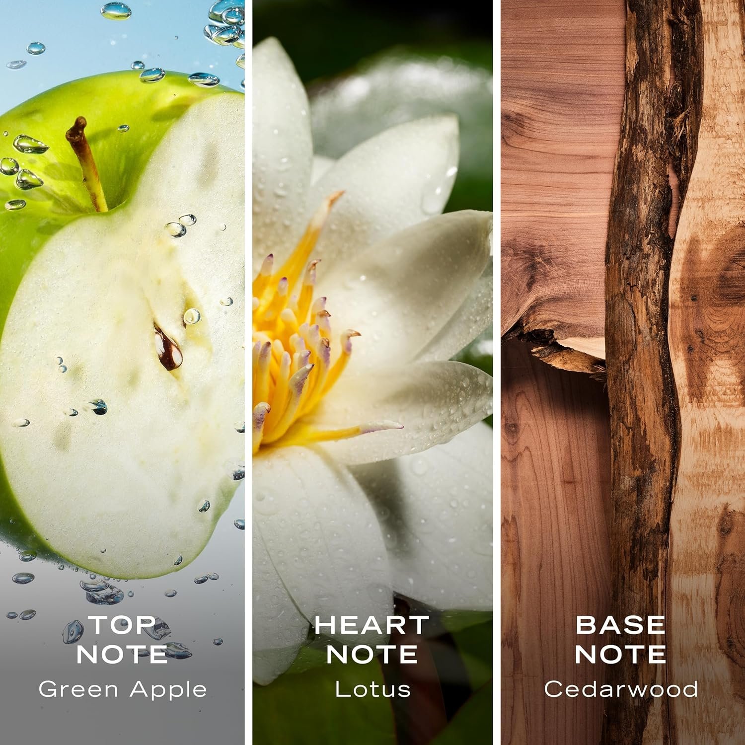 A blend of apple and water lotus laid on a woody base, combined of cedarwood, musk, and amber.