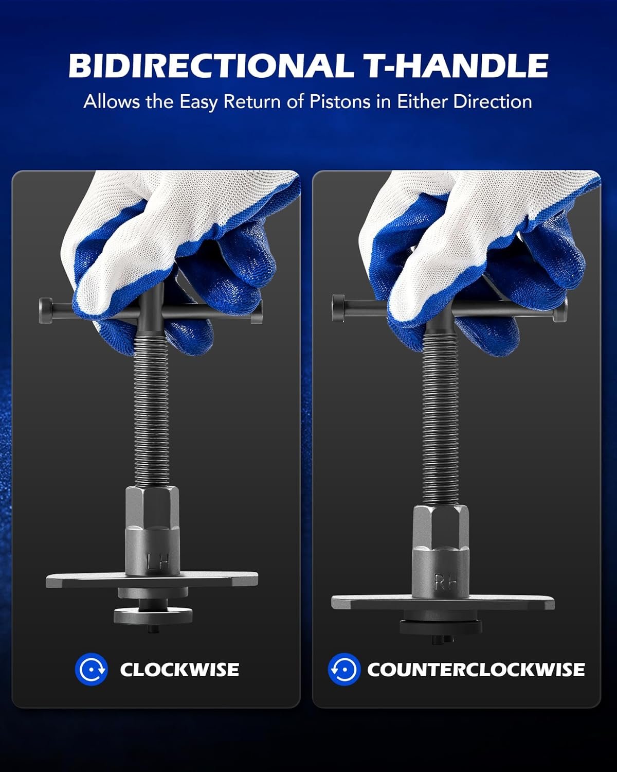 Effortless Operation: Simplify your maintenance routine by smoothly rotating pistons back into the caliper for hassle-free brake pad replacement. With precision threading on the T-handle, you can enjoy easy piston return in either direction for comfortable use.