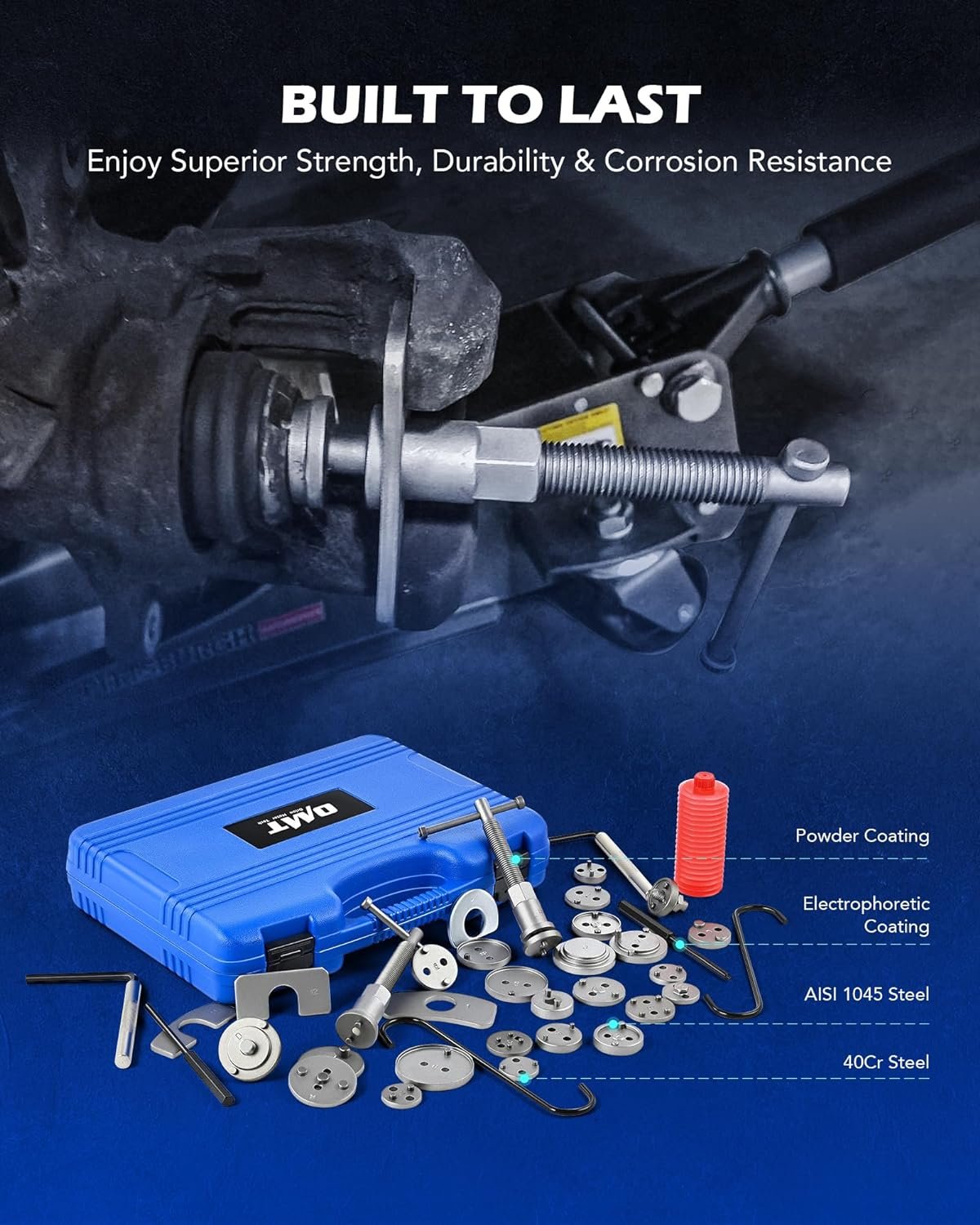 Built to Withstand Tough Use: Constructed from high quality AISI 1045 and 40Cr steel, this brake caliper compression tool offers superior strength, and the powder coating provides long-lasting corrosion resistance even after years of punishing use.