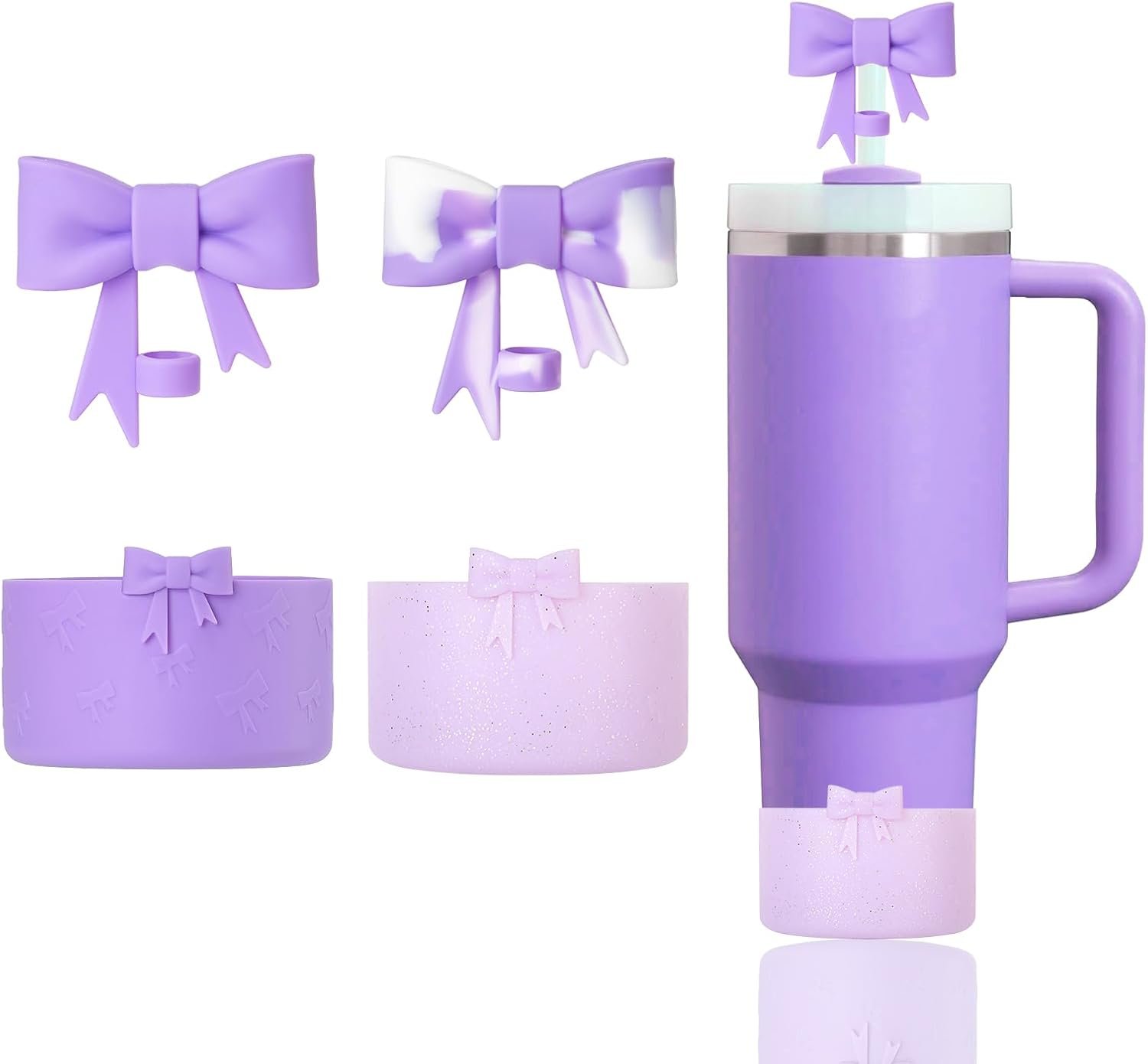 YAYAYOUNG Siliocne Bow Straw Covers and Siliocne Bow Boots for Stanley 40 oz 30 oz Tumbler Cups
