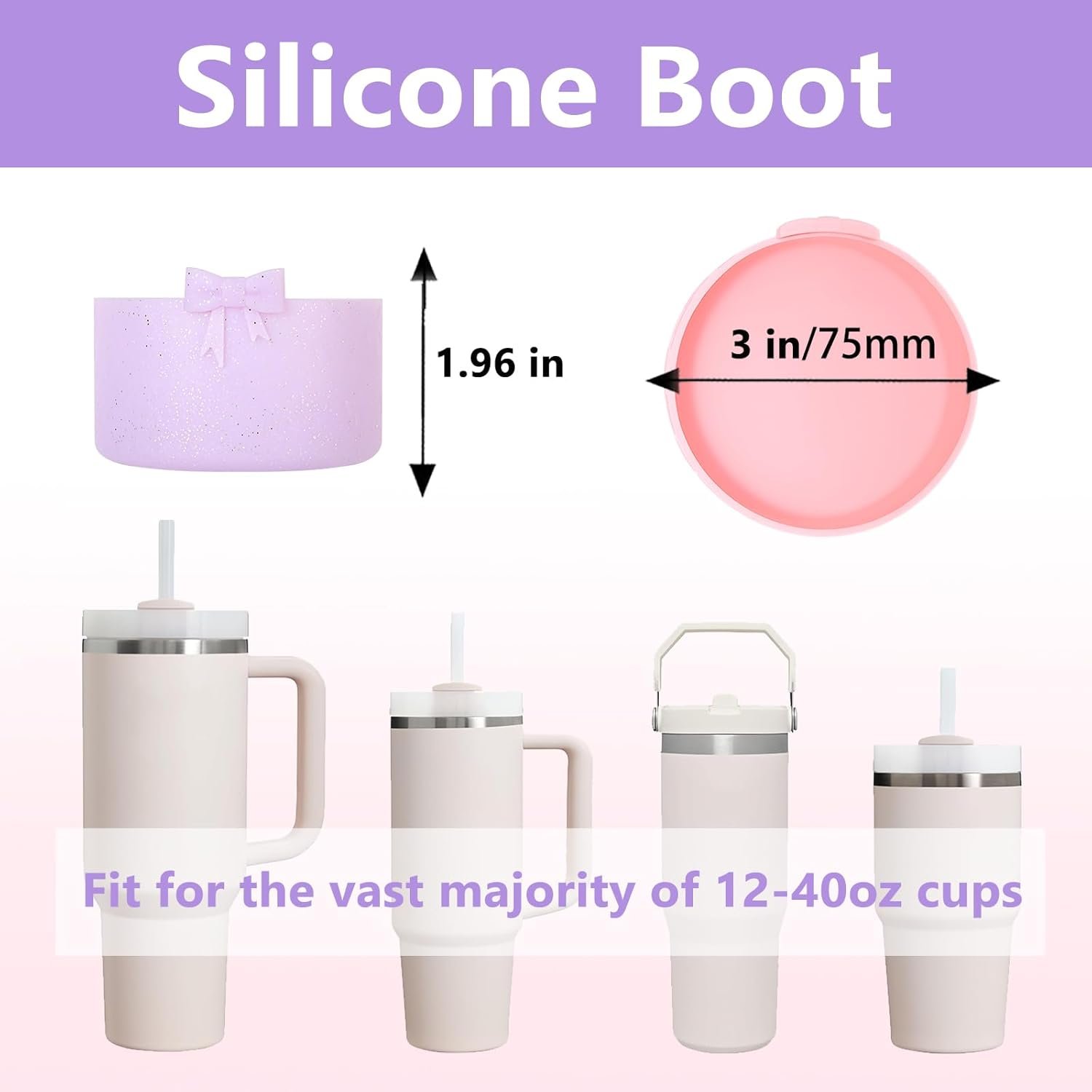 【Compatible with Stanley Tumblers】The Straw Covers are 0.4 in/10mm,perfectly compatible with compatible with Stanley 30&40 oz tumbler straw.The Bow Boot’s Diameter 2.96 inches,it can compatible with the vast majority of 12-40OZ cups,such as Stanley cups, Simple Modern tumblers, Hydroflash wide necked bottles, and other cup bottles.They are of just the right size and are not easily detached when used.