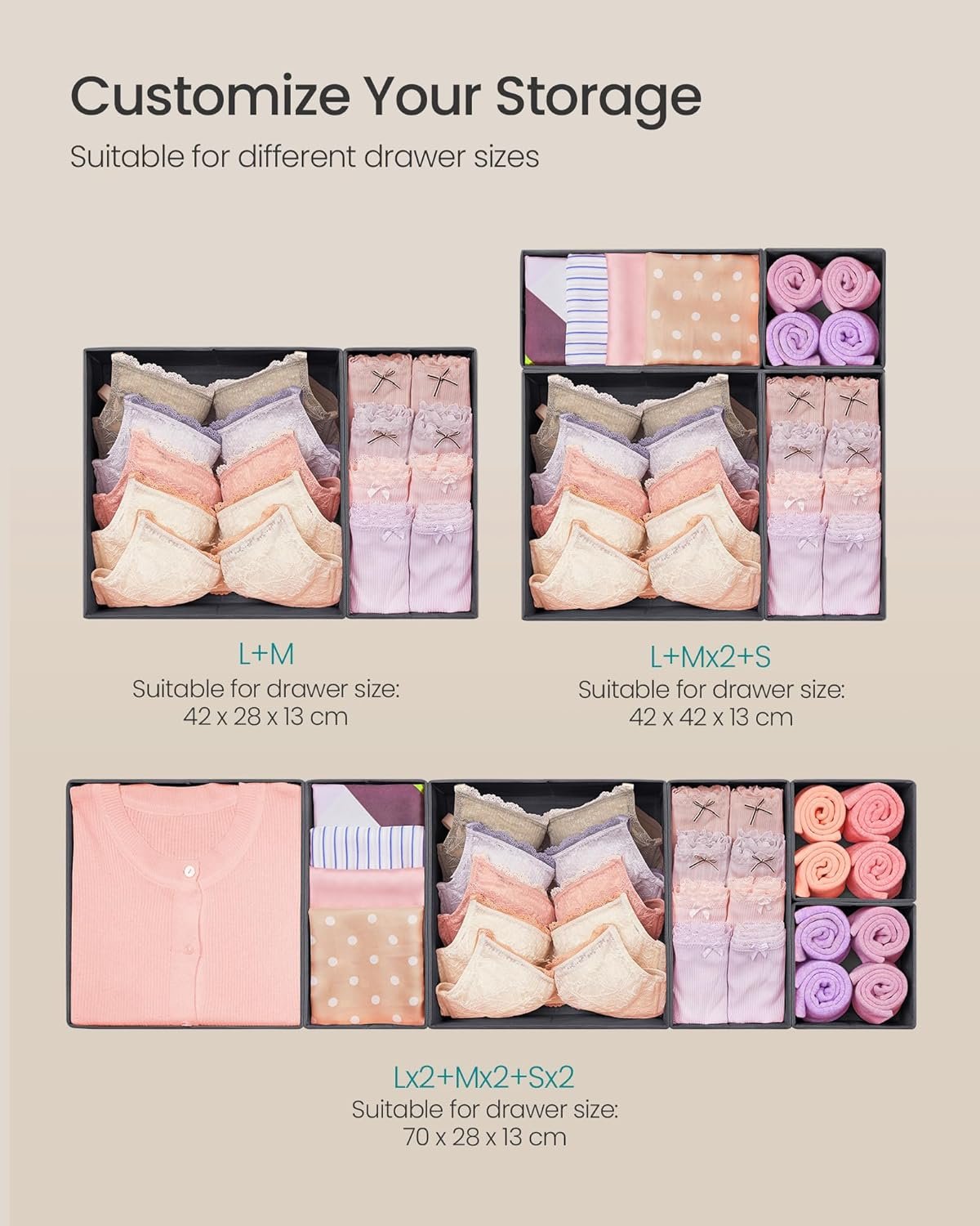 STORAGE THAT SPARKS JOY: Store bras in large boxes, underwear in middle ones, and socks in small ones; these storage bins help you sort out belts, tights, or other simple things, making your home a tidy, fun place to be