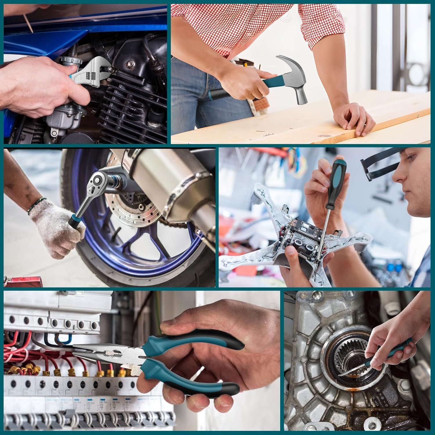 【Multi-functional Accessories Set】 This household and auto repair tool kit combines general basic, practical and essential tool accessories in one package. The toolkit box includes Rip Claw Hammer, Adjustable Wrench, Sharp-nosed Pliers, Tape Measure, Hex Key Wrench Set, Screwdriver, Socket, Twist Drill Sets(1.5mm 2mm 2.5mm 3mm 3.5mm 4mm 4.5mm 5mm 5.5mm 6mm), Wood Drill Bits(5 mm 6 mm 8 mm), Flat Drills(10mm 12mm 16mm 18mm 20mm), Stainless Steel Ruler, Woodworking Pen, Extension Bar, 200mm Flexible Shaft, Expansion Screw sets(134pcs), Rechargeable Electric Drill(rechargeable batteries and charging adapter), etc.