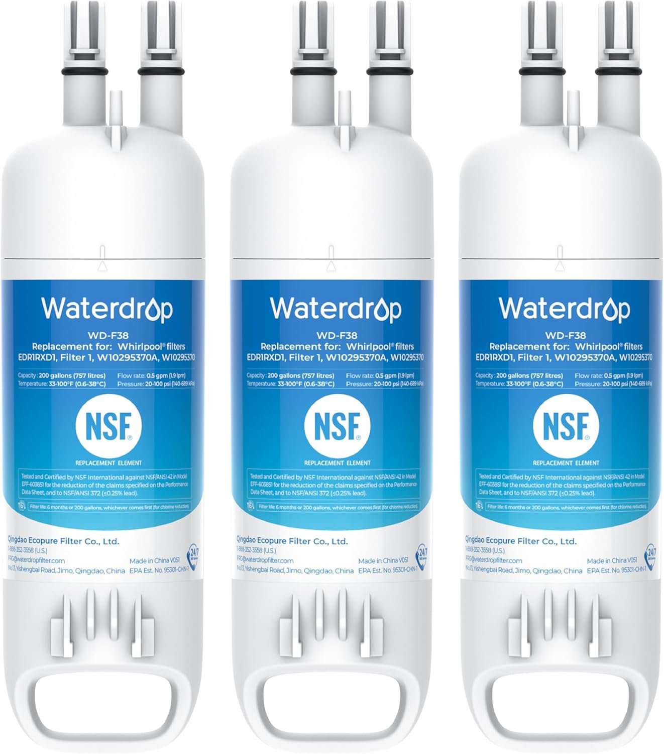 🔥 Hot Deals Today 🔥 Waterdrop EDR1RXD1 Replacement for Everydrop® Filter 1, W10295370A, EDR1RXD1B, P8RFWB2L, P4RFWB, Kenmore® 46-9081, 46-9930, WD-F38 Refrigerator Water Filter, 3 Pack