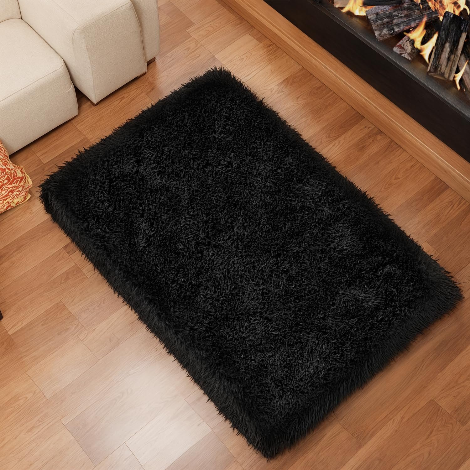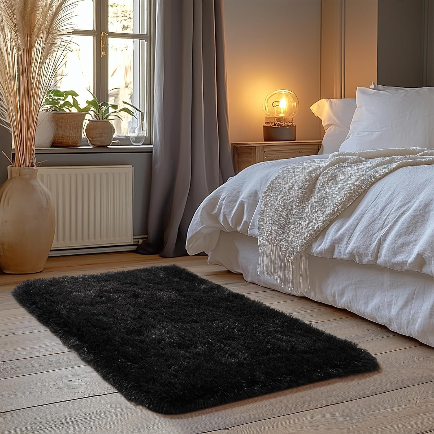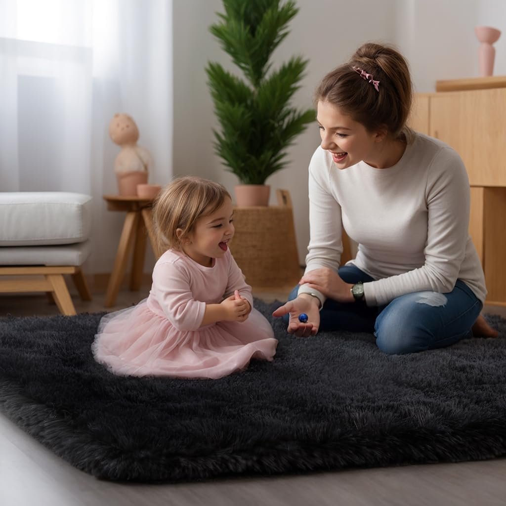 π₯ Hot Deals Today π₯ Zentavio Bedside Rugs Small 2×3 Shag Entry Entrance Rugs Soft Bedroom Carpet Area Rugs for Dorm College Essentials Non-Slip Living Room Throw Rug Home Decor Aesthetic Nursery Black